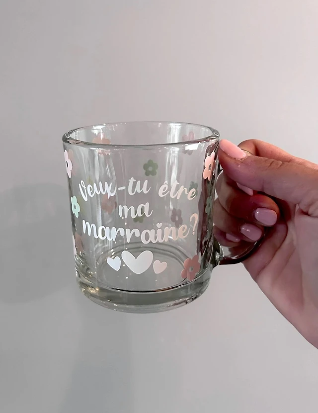 Tumbler en verre avec couvercle et paille (16 oz) - Coeur de maman pastel