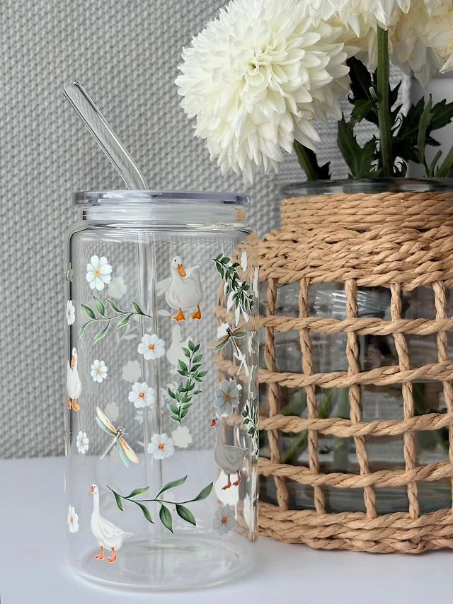 Glass Mug with Lid and Straw (17 oz) - Spring Sweetness 🌼🌿💛