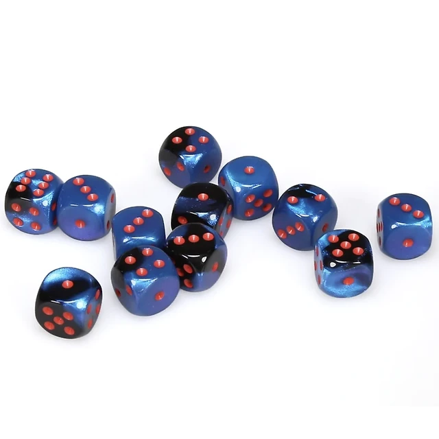 12 dés 6 16mm Gemini bleu/rouge avec points dorés