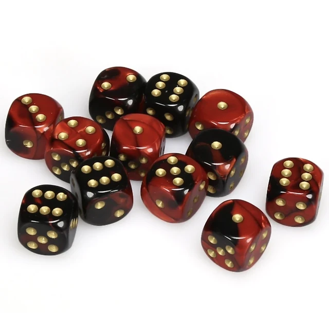 12 dés 6 16mm Gemini noir/rouge avec points dorés