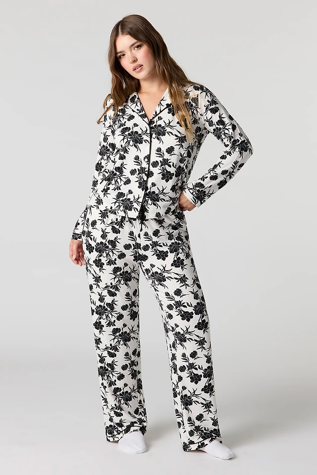 Ensemble pyjama avec chemisier boutonné imprimé et pantalon
