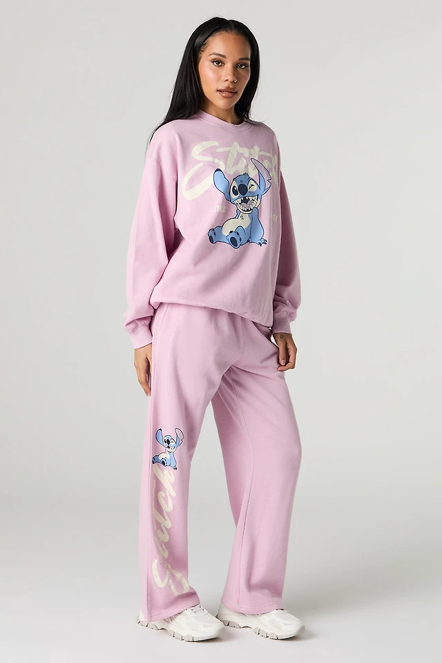 Pantalon en molleton rayé à jambe large et imprimé Stitch assis pour enfants