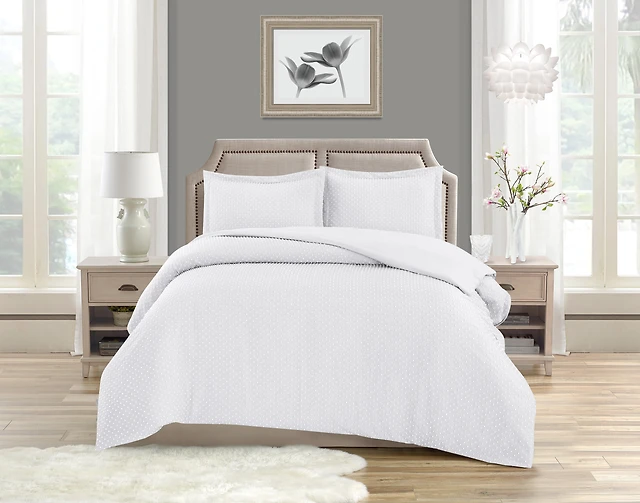 Ensemble de housse de couette à texture à pois Swift Home, literie douce toutes saisons avec fermeture éclair, simple, blanc