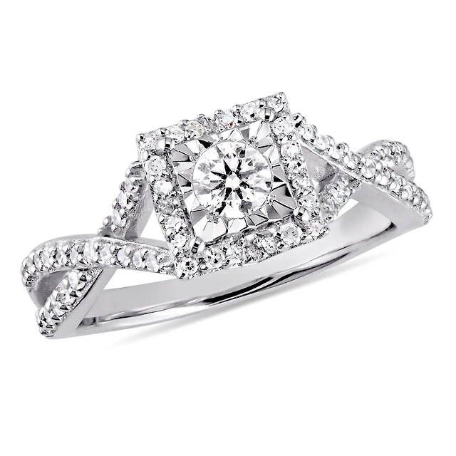 Bague de fiançailles entrecroisée de forme auréole Miabella avec diamants 0,50 CT poids total en argent sterling