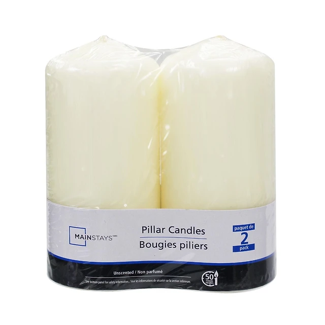 Mainstays 2PK bougies piliers ivoire, non parfumé Paquet de 2, 2.8"Dia x 6"H