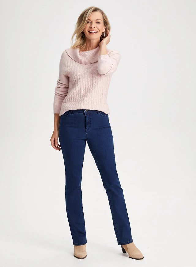 Pull à perles et jean jambe étroite