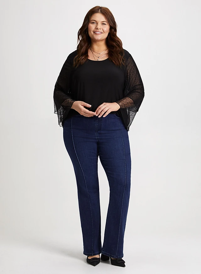 Haut à manches transparentes et jean à jambe droite