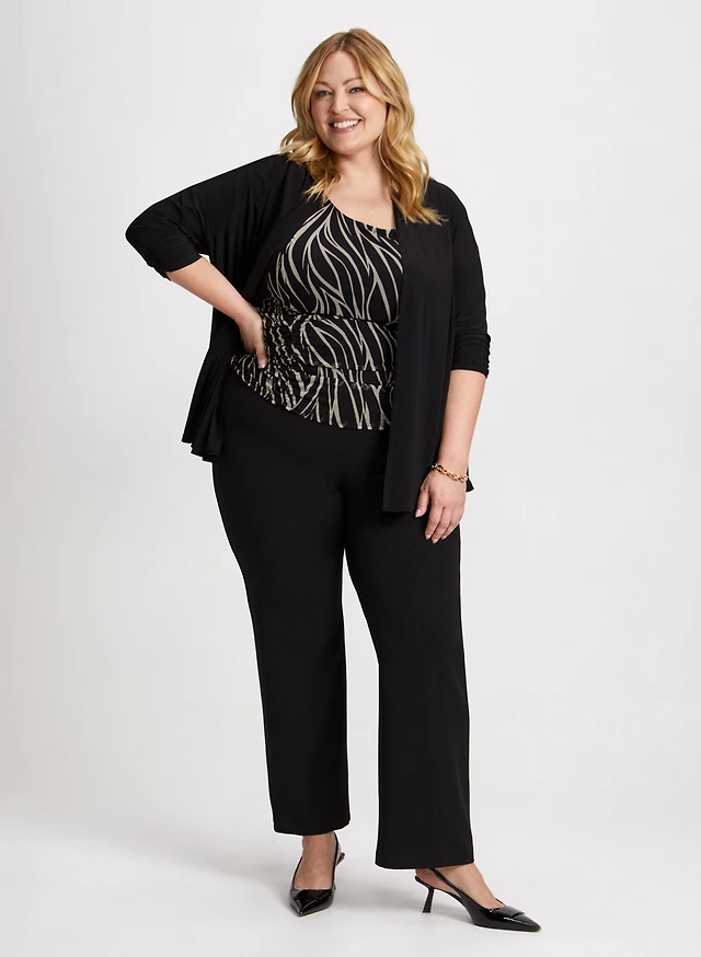 Cardigan ouvert et pantalon en crêpe à jambe large
