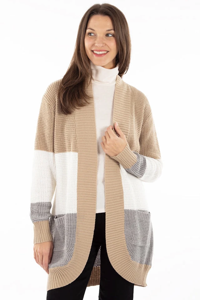 Le cardigan en tricot deux couleurs doublé flanelle par Oxygen