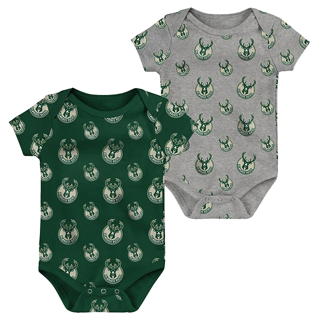 Lot de deux bodys doubles Milwaukee Bucks vert chasseur/gris pour bébé