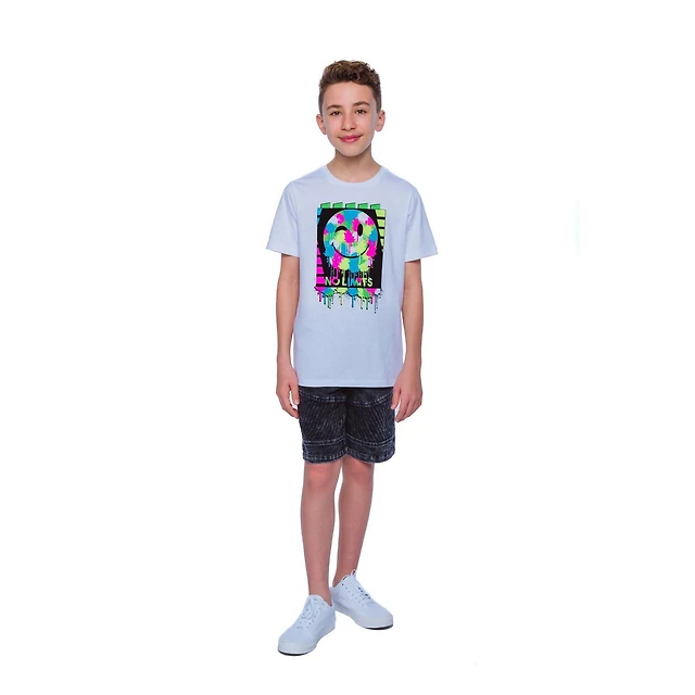 T-shirt de base pour garçon. Ce t-shirt à col rond pour garçons a des manches courtes et un imprimé tendance et Tailles TP à TG