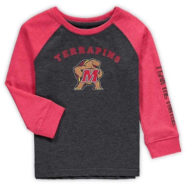 T-shirt raglan à manches longues Maryland Terrapins noir chiné Colosseum pour tout-petit