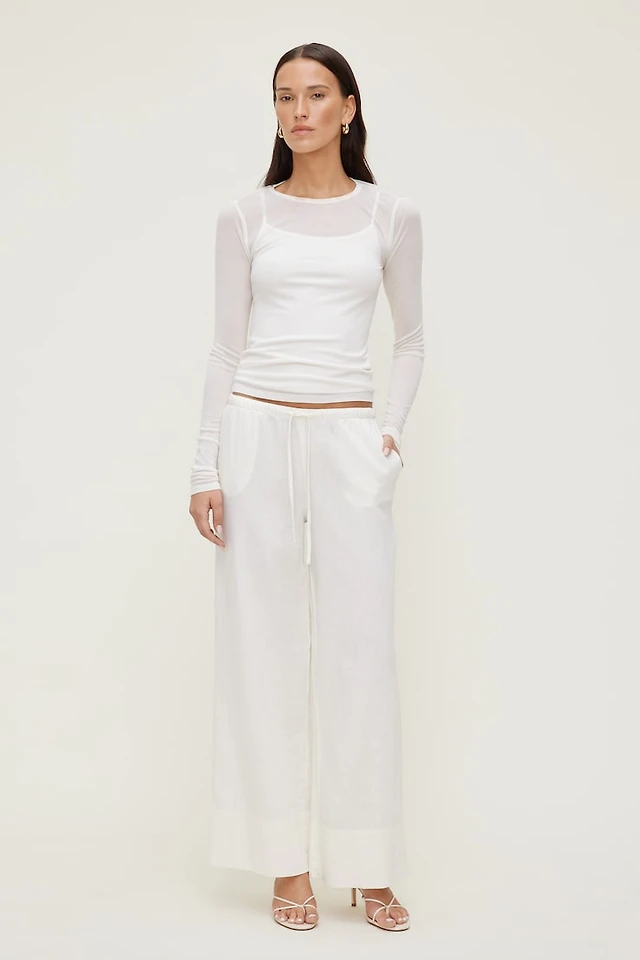 Pantalon en mélange de lin fluide et jambe large
