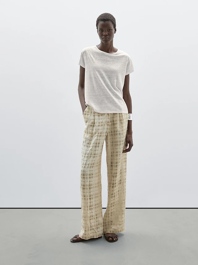 PANTALON À CARREAUX AVEC LIN ZW COLLECTION
