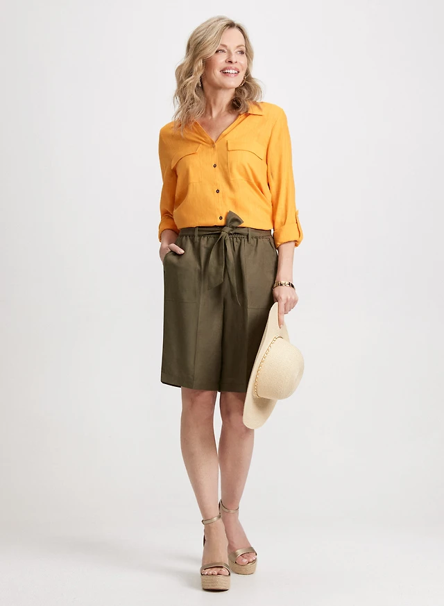 Blouse à manches roulées et short en lin