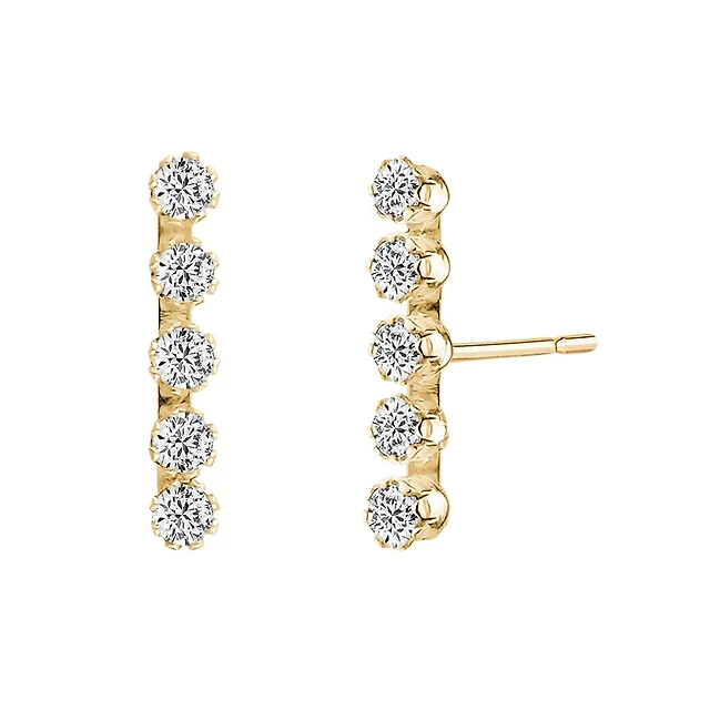 Boucles d'Oreilles femme- barre Or-10k & zircon Cubique. Color: jaune | Doucet Latendresse
