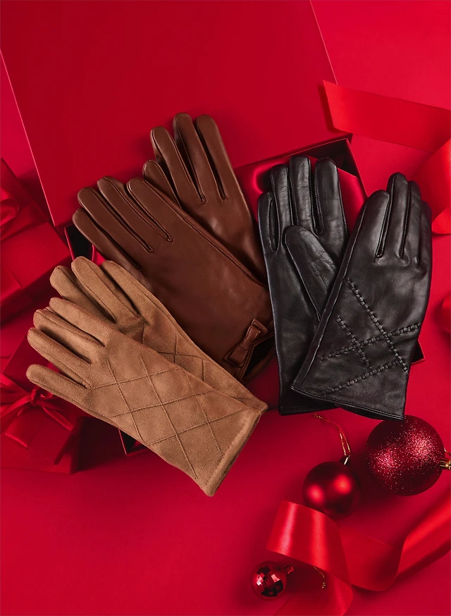 Les gants à motif pied-de-poule avec poignets en fausse fourrure