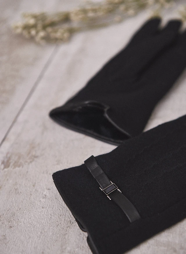 Les gants tricotés avec détails en similicuir et boutons-pression