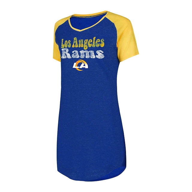 Chemise de nuit raglan à col en V Concepts Sport Royal/Gold Los Angeles Rams pour femmes