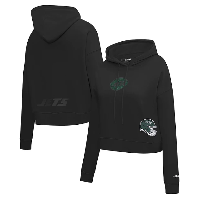 Sweat à capuche court imprimé bijou Pro Standard pour femme, noir, New York Jets