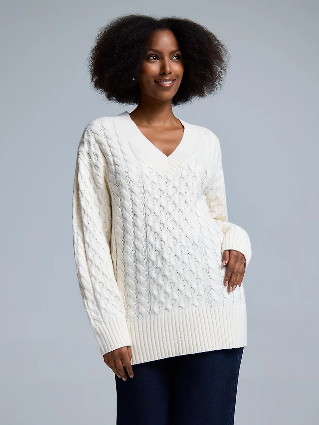 Chandail en maille torsadée et col V