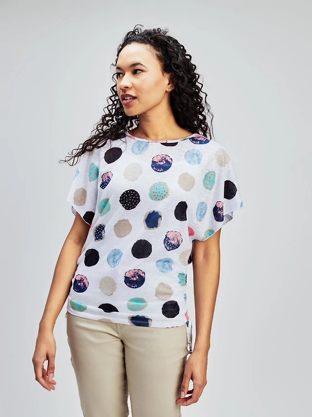 T-shirt maille pointelle et bordure frisons imprimé fraise