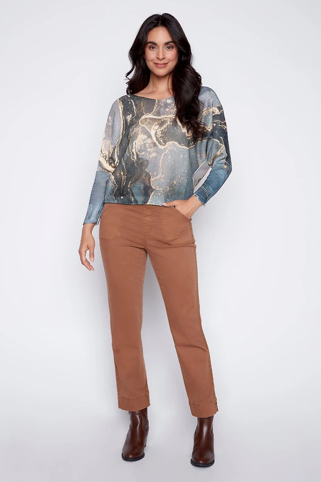 Le pull avec détails en strass et ourlet à cordon de serrage