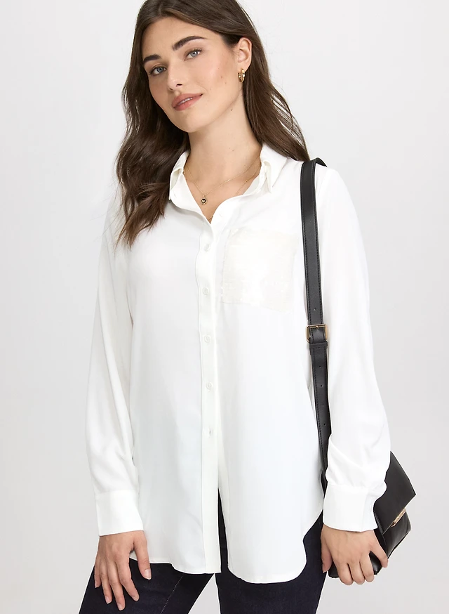 Blouse à col fendu et manches bouffantes avec garnitures oeillets