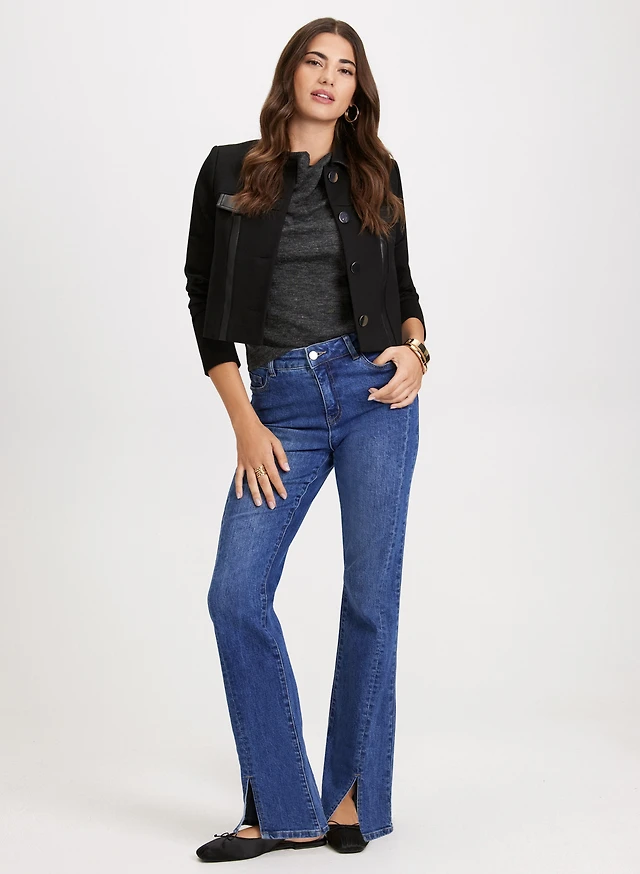 Veste à col châle et jean à jambe évasée à fente