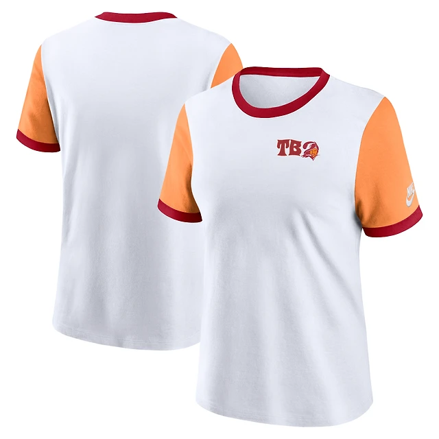 T-shirt Nike pour femmes, blanc/orange, Tampa Bay Buccaneers Rewind Ringer