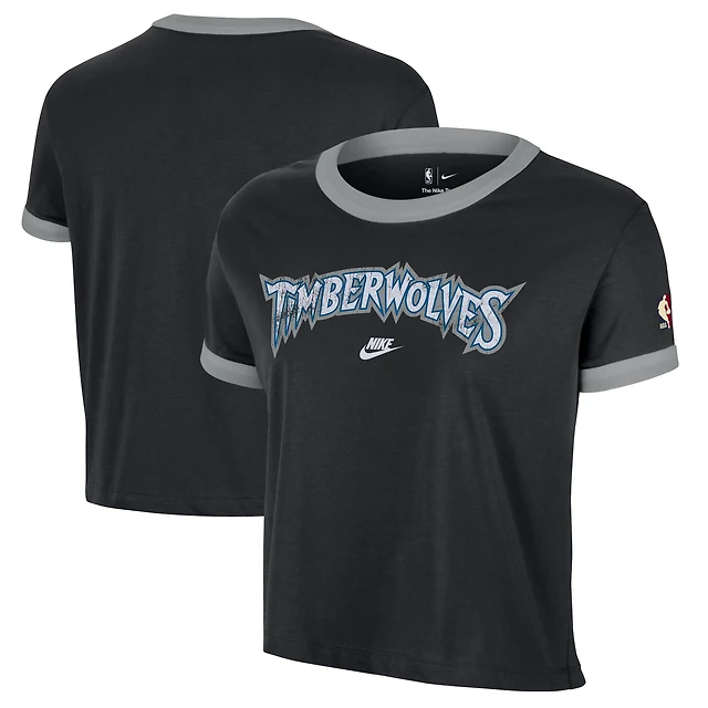 T-shirt Nike noir pour femme Minnesota Timberwolves Classic Edition Hardwood Classics Essential Vintage Ringer
