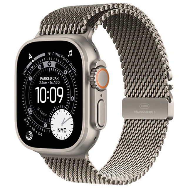 Apple Watch Ultra 3 (GPS + Cellulaire) avec boîtier de 49 mm en titane naturel et bracelet milanais à rabat en titane naturel par Koodo - Petit - Paiement Balance mensuel