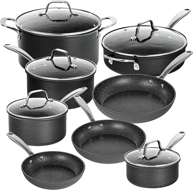 Granitestone Lot de 13 casseroles et poêles antiadhésives, ustensiles de cuisine, casseroles et poêles antiadhésives anodisées dures avec couvercles, passent au lave-vaisselle