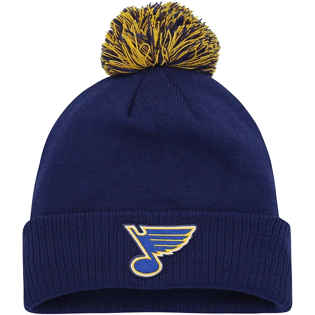 Bonnet en tricot à revers COLD.RDY adidas bleu St. Louis Blues pour hommes avec pompon