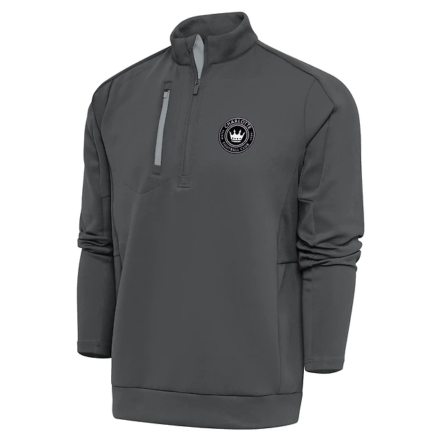 Pull à col rond et fermeture éclair quart de tour pour homme, gris Antigua Charlotte FC, logo métallisé brossé