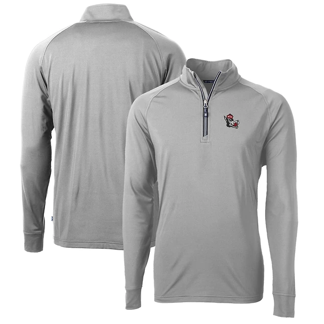 Pull zippé quart de tour pour homme, gris, en tricot extensible recyclé, couleur grise, l'équipe NC State Wolfpack Adapt Eco Knit, Cutter & Buck.