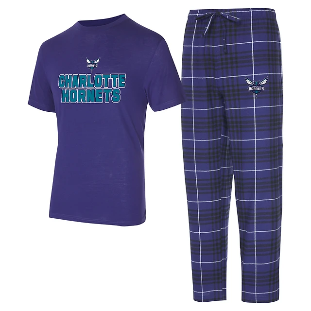 Ensemble de nuit pour homme Concepts Sport violet/noir Charlotte Hornets Vector haut et pantalon en flanelle