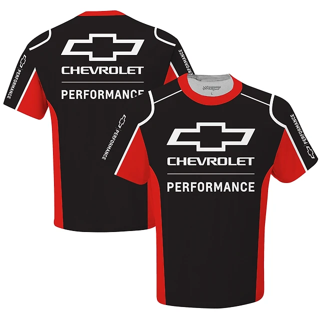 T-shirt noir à damier pour homme, motif sport Chevrolet
