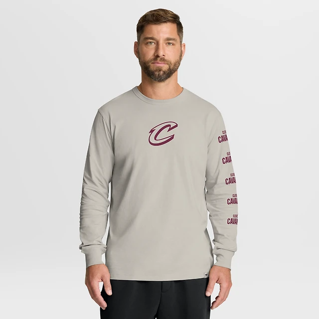 T-shirt à manches longues premium pour homme, collection Fanatics, crème, Cleveland Cavaliers Crossover, motif Ball Screen Action