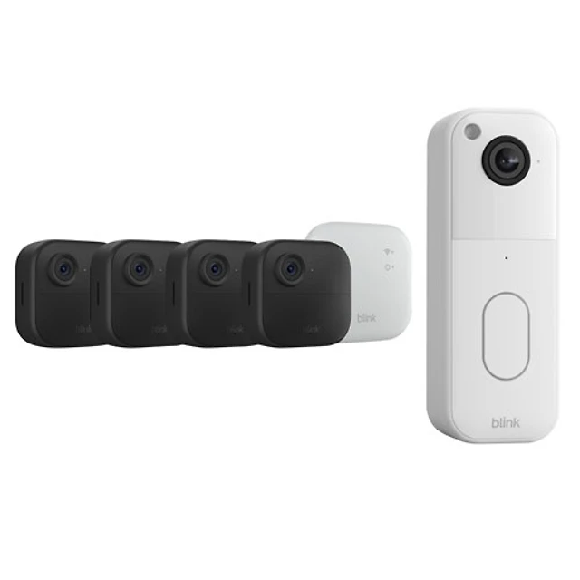 Système de surveillance avec caméras IP sans fil HD intégrale 1080p Outdoor 4 (4 unités) et sonnette vidéo Wi-Fi 1440p de Blink