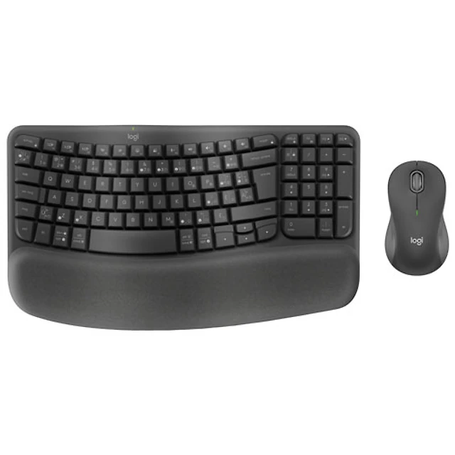 Ensemble avec clavier ergonomique sans fil et souris optique sans fil Wave Keys MK670 de Logitech - Graphite - Français