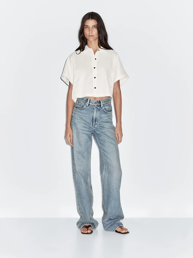 Chemisier lin à manches chauve-souris