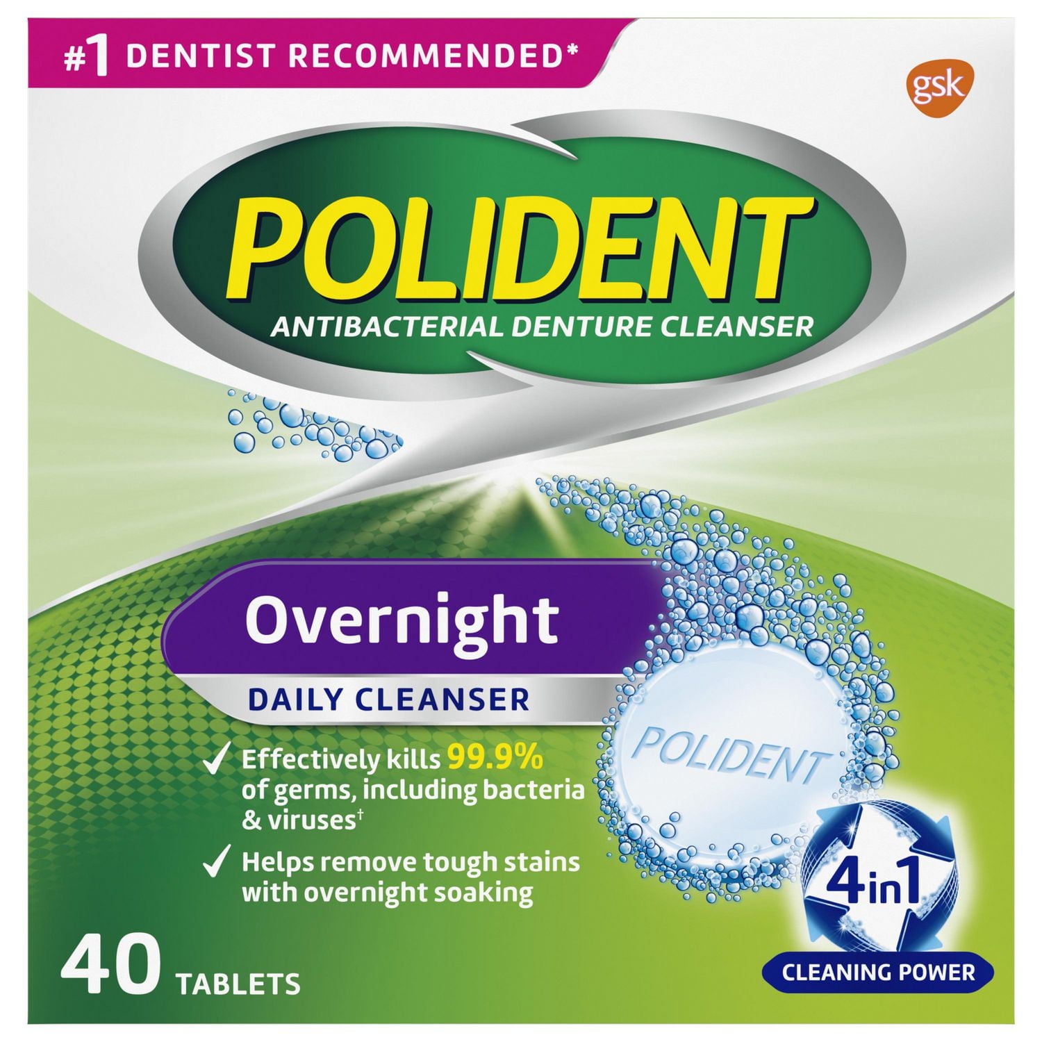 Polident Pour la nuit Nettoyant quotidien pour prothèses dentaires 40 Fraîcheur de menthe triple