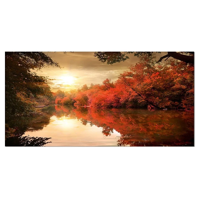 Designart Coucher de soleil d'automne coloré sur la rivière Art mural sur toile