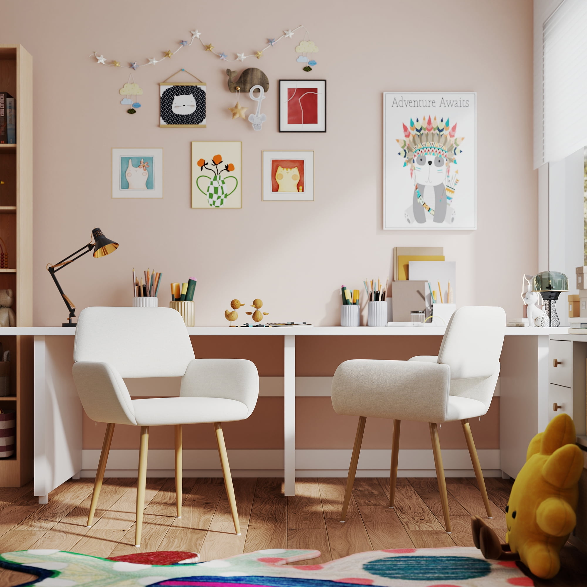 Homy Casa Lot de 2 fauteuils d'appoint modernes en tissu avec dossier ouvert et pieds en métal en bois