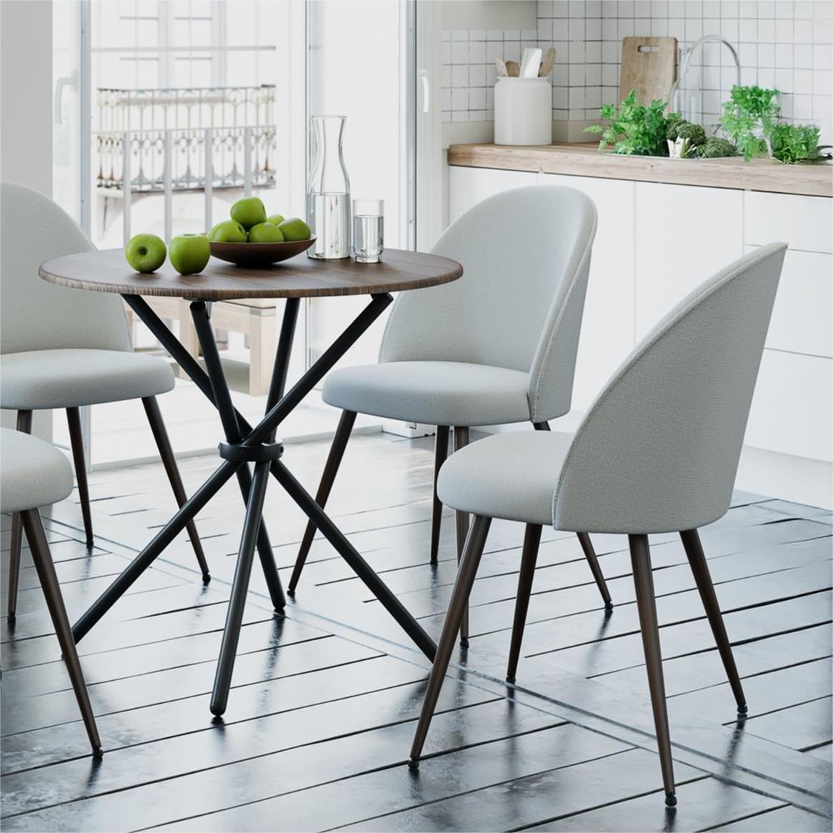 Ensemble table et chaises de salle à manger industriel 3 pièces Homy Casa, plateau rond imitation expresso et 2 chaises à dossier rembourré, pour petits espaces, tissu beige