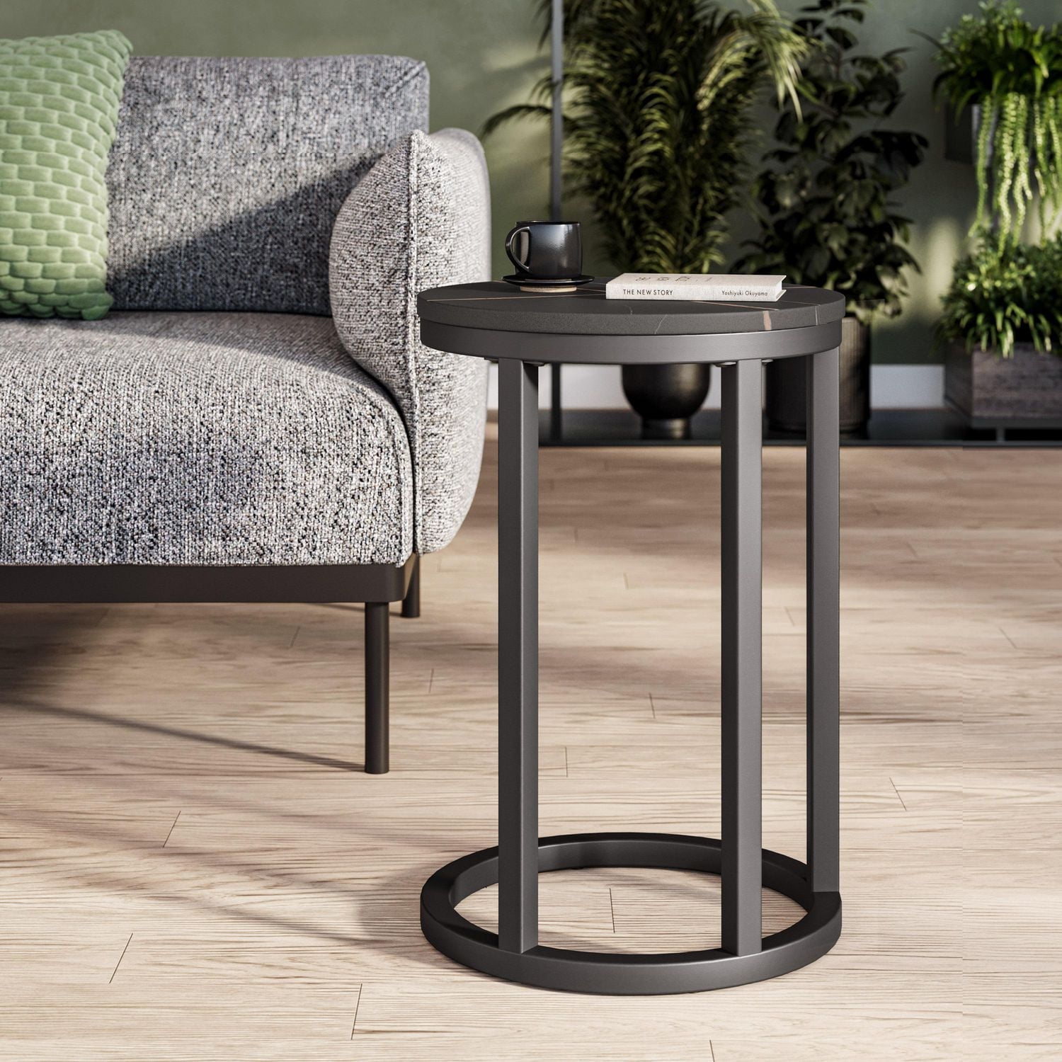 Table d'appoint d'intérieur ronde en bois d'ingénierie CorLiving Fort Worth avec base en acier en forme de C