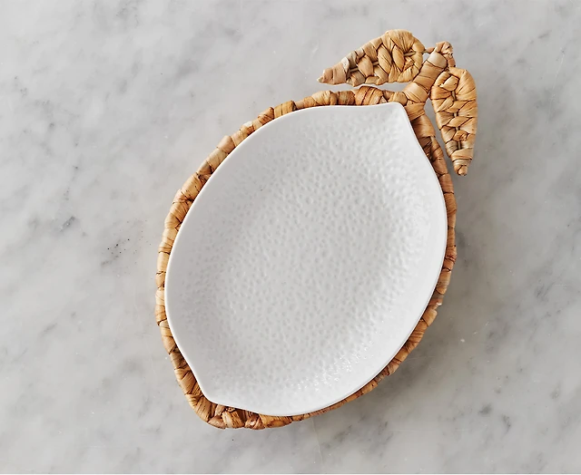 Assiette en forme de citron avec plateau en jacinthe d'eau Catalina, blanc et naturel