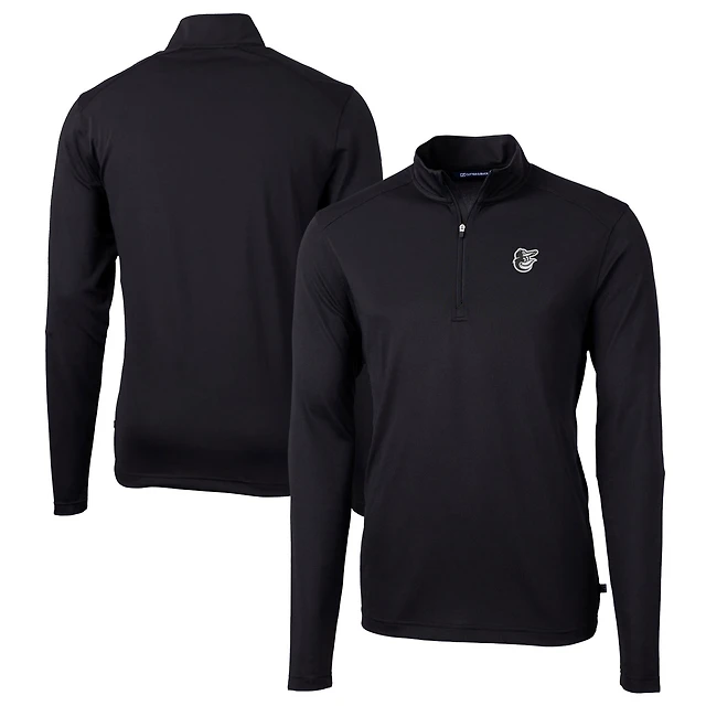Veste zippée quart de tour Virtue Eco Pique DryTec pour homme, coupe-vent et buck, noire, Baltimore Orioles, grandes tailles