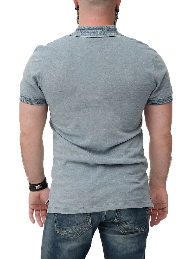 Polo à rayures bleues et grises
